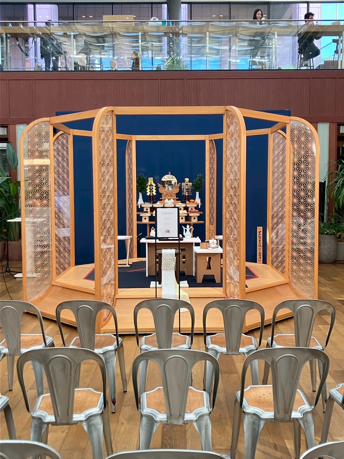 東京・恵比寿ガーデンプレイスにて組み立て式茶室、無事に設営して献茶式を彩る事が出来ました。